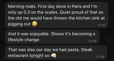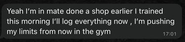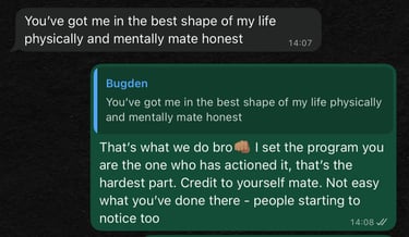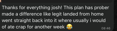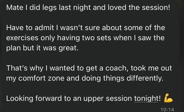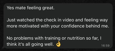 Bi-Weekly Check-Ins: You'll receive a bi-weekly check-in video from me (not just a rushed voice note) where I'll review your progress and make any adjustments necessary to your plan.
