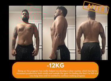 “I’m feeling better than I have in years. This programme has transformed not just my body but my mindset, energy and daily habits. It’s not just been a fitness journey, it’s been a full lifestyle shift, and I’m excited to keep building on it.” – Dan (12-in-12 2025, Winner 🏆)
